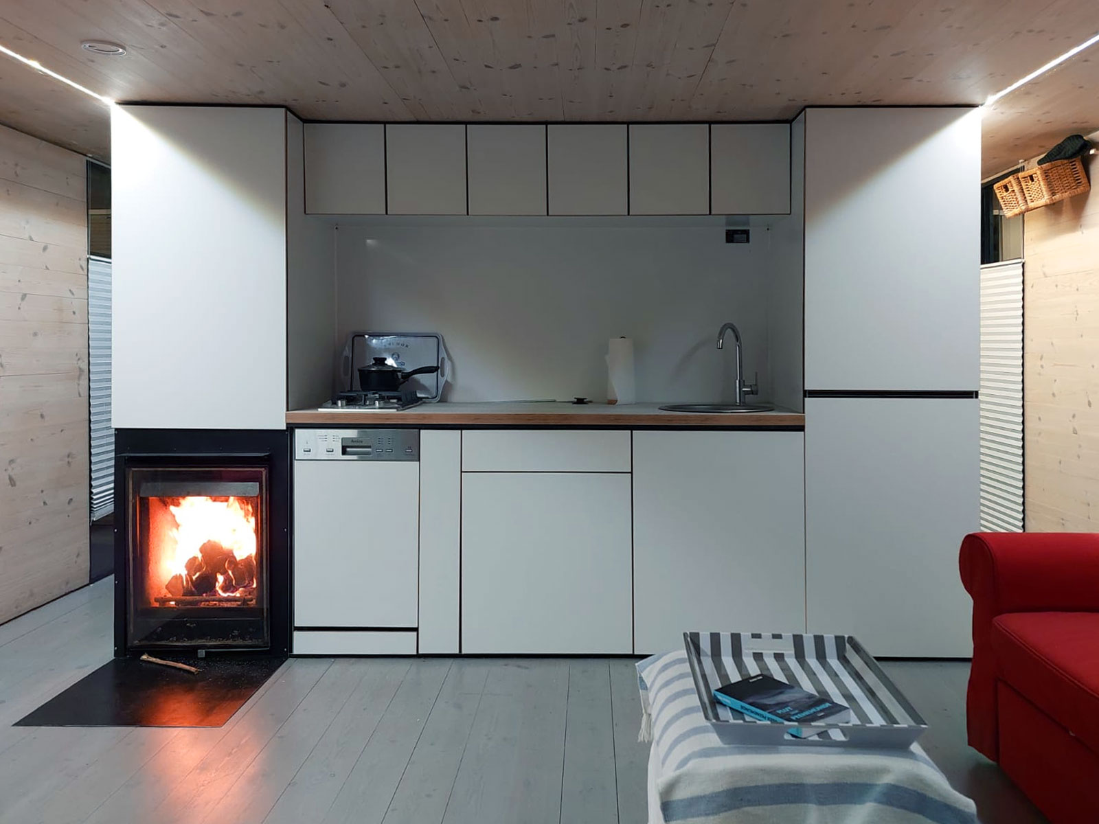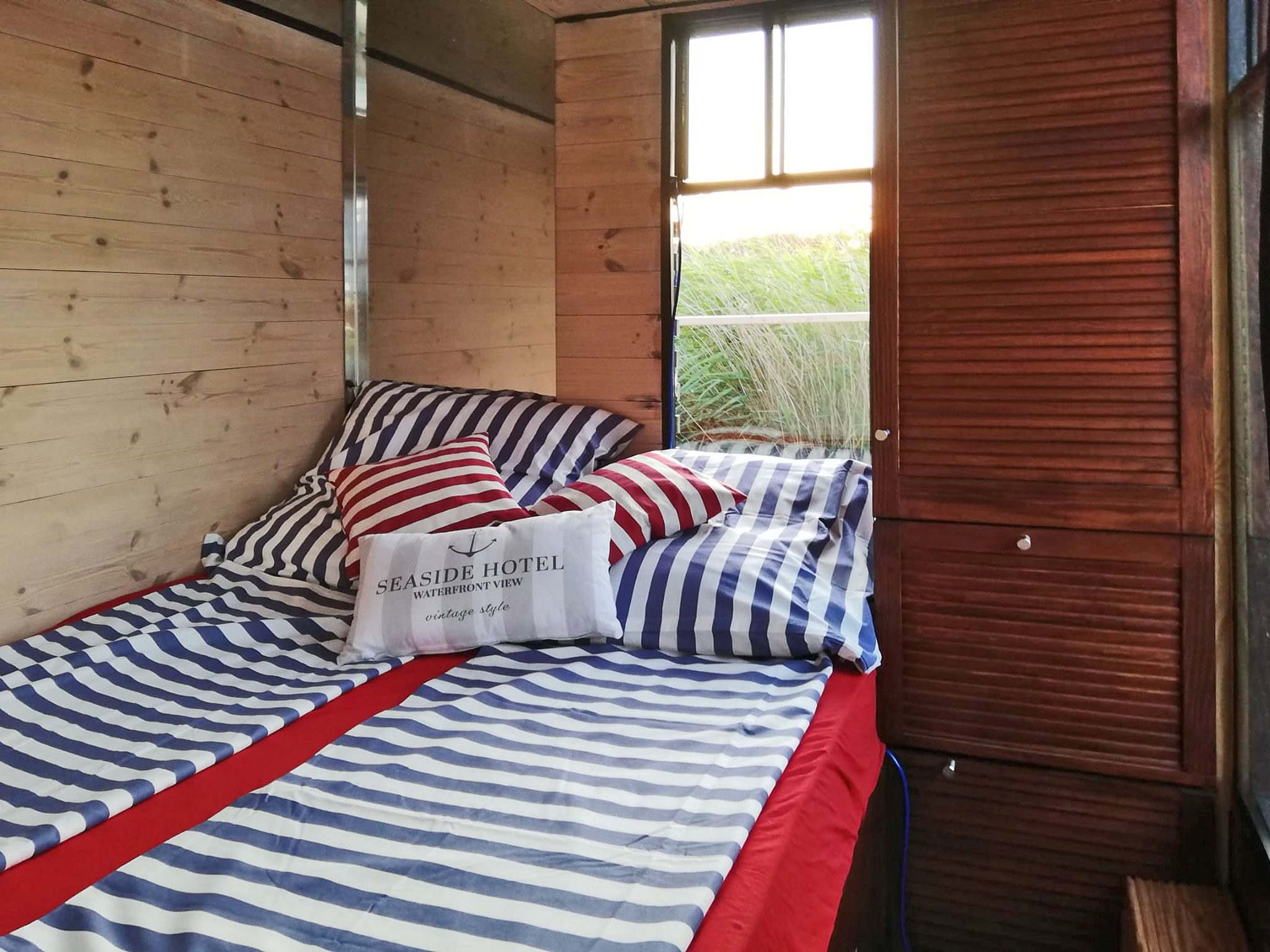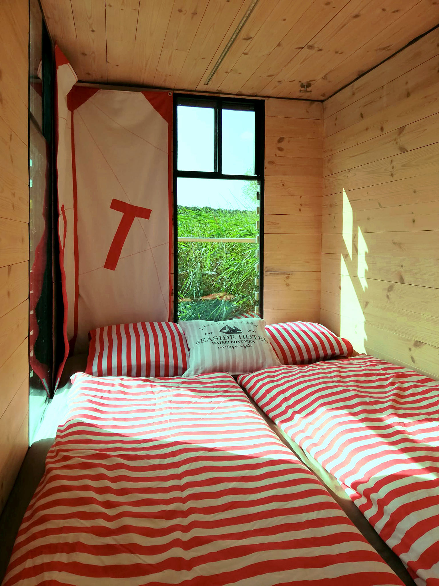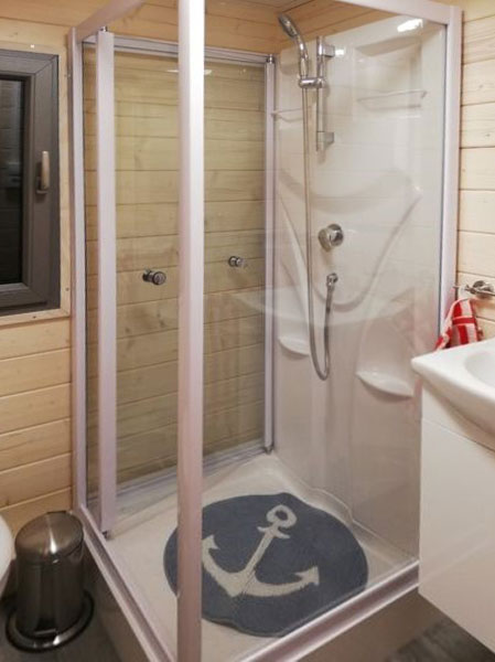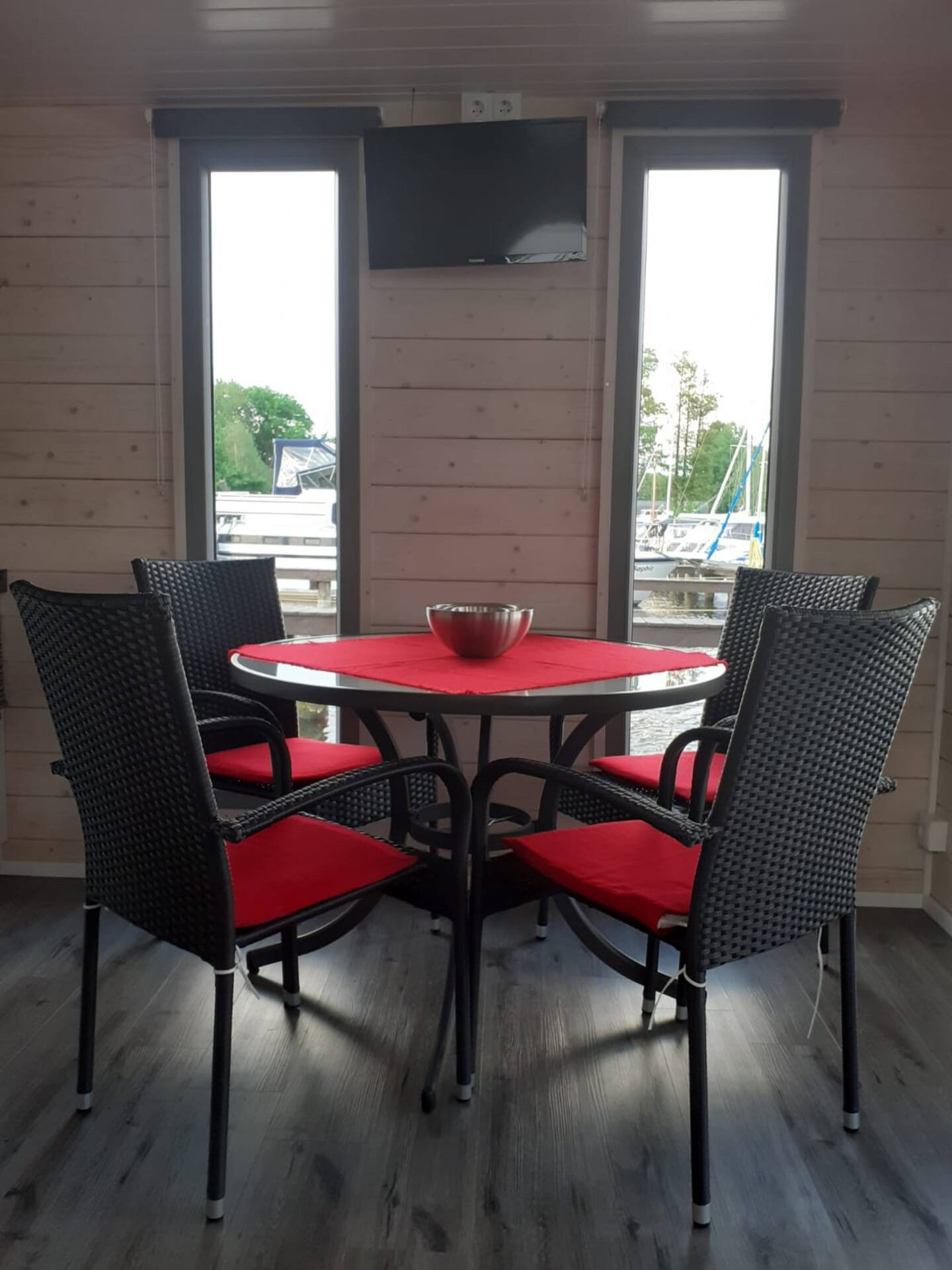 Das NautikHus ist ausgestattet mit zwei Kojen, WC und Dusche, sowie einem Salon mit Pantry-Zeile als Kombüse. Eine zehn Quadratmeter große überdachte Terrasse am Bug mit Lounge-Set lädt zum Verweilen ein.